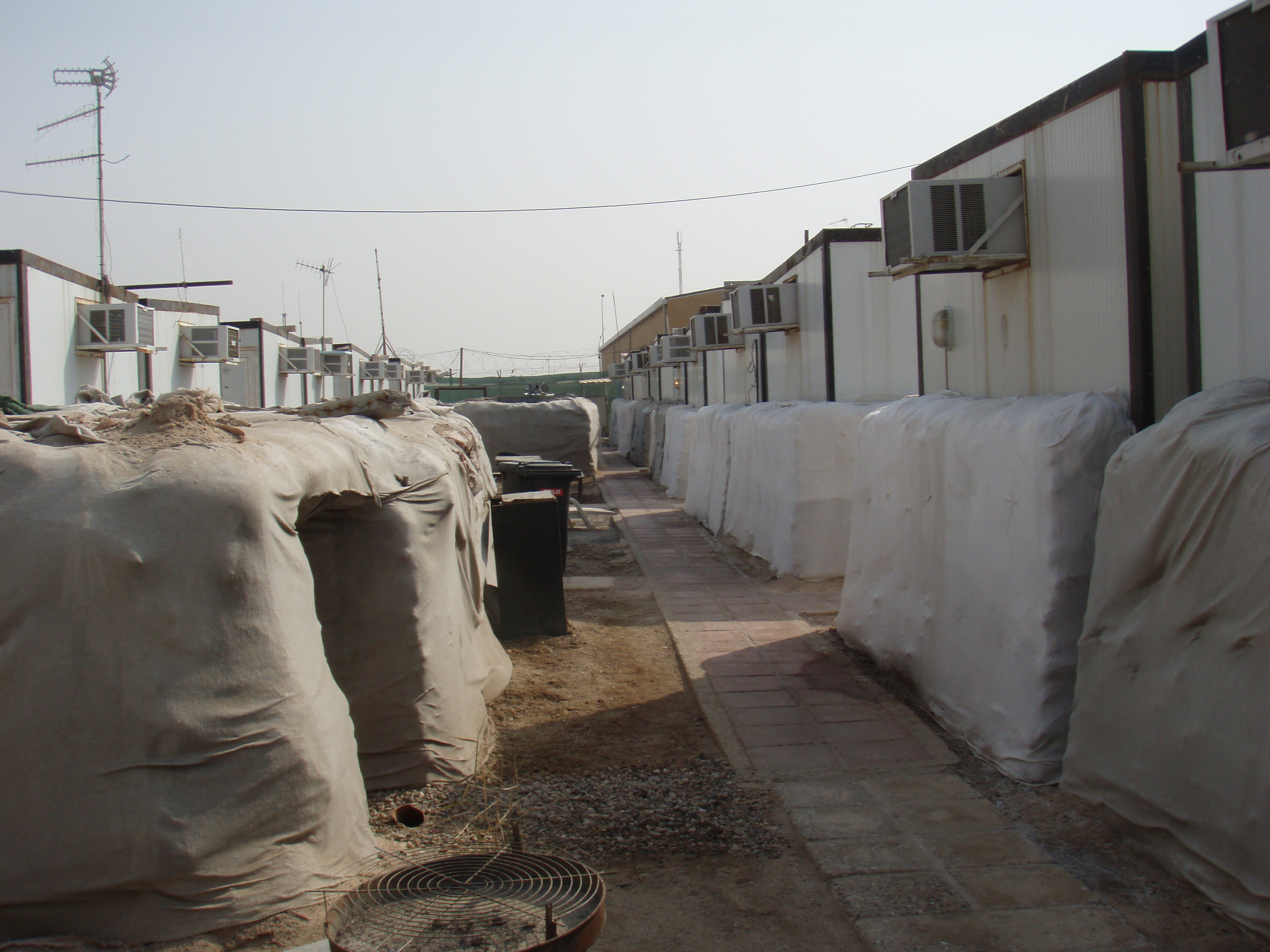 Vandaag naar de basis voor mijn badge. Vanwege allerlei bureaucratisch gedoe werden we niet door onze eigen PSD-ers gereden, maar door een Amerikaanse out-fit. Die verontschuldigen zich voor alles. Andere route, andere poort, 2 minuten oponthoud, iets vergeten: uitgebreide excuses. Ja, mij maakte een omweggetje na bijna drie maanden binnen de muren natuurlijk niet uit, ik vond het prima. Kon ik met eigen ogen van dichtbij de huizen onder de daken zien die ik anders alleen van het dak af kende. Door de omweg kwamen we vlak lang de haven, zag ik dat schip met slagzij eens uit een andere hoek. En ja, inderdaad, dat was de moskee, waarvan wij alleen de spits met de groene neonverlichting zien ’s avonds. De stalletjes met de watermeloenen, de winkels met van alles en nog wat, de posters voor verloren imams, jongetjes met ezelkarretjes, mensen wachtend op de bus. En overal wachtposten, checkpoints, pantserauto’s met de deuren open, pantserauto’s met de deuren dicht. Langs een ministerie, langs een ziekenhuis, een pretpark. Als een spons die drie maanden in 49 graden heeft gelegen zoog ik de omgeving op. Jammer dat de achterste ramen van deze auto’s zo donker waren. Op de base wel drie keer in hetzelfde kantoor geweest om er voor te zorgen dat, nu ik er toch was, ik ook de PX en de D-FAC in mocht. De grote attractie hier. Je moet er wat voor over hebben, onder andere alle vingerafdrukken, je handafdrukken, de zijkant van je handafdrukken en je irisscans laten nemen, maar dan mag je ook binnen in La La land. Mijn hele boodschappenlijstje afgewerkt en al die dingen die je niet nodig hebt, of waarvan je niet weet dat ze er zijn meegenomen. De fiets en de auto en het nieuwe vloerkleed heb ik niet gedaan, de massage stel ik uit tot een later keer en de kapper doe ik nu maar niet, maar het was toch even een leuke afleiding. En ik weet nu ook weer hoe heet heet is, we hebben dezer dagen zuiden wind, dus alhoewel het vanochtend eigenlijk nog koel was stond het water ons in de nek van de relatieve vochtigheid, die de hele dag hoog bleef. We hebben wat afgesjouwd daar. Er staan daar dus heel veel mensen ’s morgens in de rij om buiten aan het werk te gaan, bij deze temperaturen, en dan ook nog Ramadan, niet drinken in deze hitte. Na een lunch met heel veel aardbeienschepijs met slagroom toe, met drie plastic tasjes vol weer vertrokken halverwege de middag. Heb ik nu die badge? Nee, dit was stage een, ik moet ooit nog een keer, en als het meezit heb ik hem volgende maand.