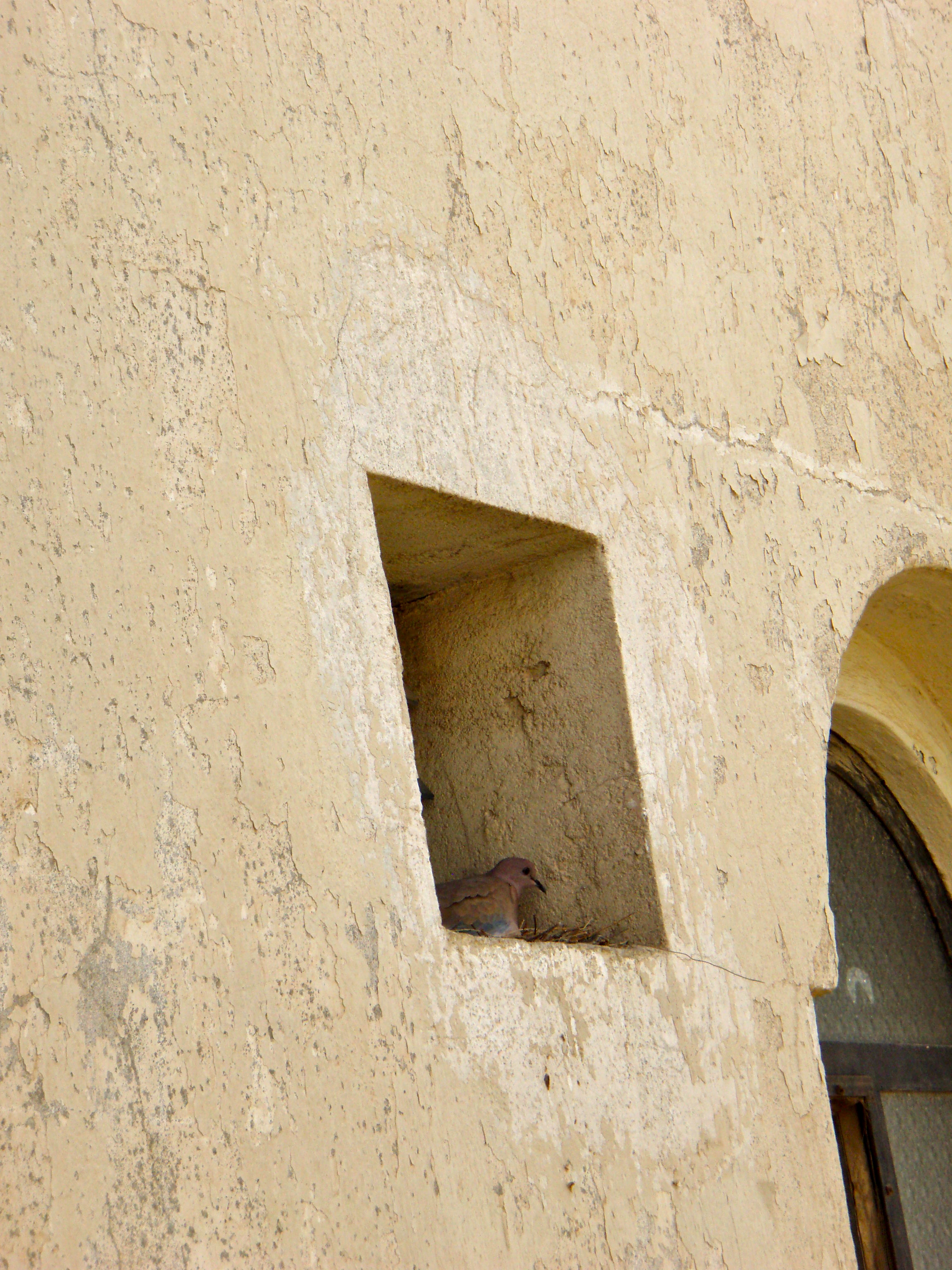 P9300009 Een mei leggen alle vogels een ei. Tenminste, bij ons op het noordelijk halfrond dan natuurlijk, oplettend lezertje. Ook hier in Basrah zag ik in juni en juli jonge mussen, dus hier houden ze zich er ook aan. Maar sommige vogels leggen te hooi en te gras. Duiven bijvoorbeeld zijn lang en vaak actief. Volgens Mr A zat er een duivennest in de raamnis van badkamer naast ons kantoor. Hij zag vogels en gedoe. Ik had die duiven al veel gehoord, ze zelfs opgenomen met Flipje. Het zijn die echt Arabische torteltjes, die mij erg deden denken aan het hotel in Dahab waar ik drie keer zeer vrolijke vakanties doorbracht. Een onmiskenbaar koerduifjes geluid. Even polshoogte genomen vanaf het balkon, u weet wel, dat balkon van Ali C. Als ik mij om de muur heen boog kon ik de raamnis net zien. En inderdaad, daar zat een duifje op haar nest. Fotootje genomen om aan Mr A te laten zien, zodat hij gelijk kon zien zijn veronderstelling juist was. En nu ziet u hem ook. Trouwens wel slim van die duiven want de goede tijd breekt aan, minder heet. Ik zie meer vlinders en ook meer vliegen en muggen, die zich verstopt hadden toen het zo heet was.