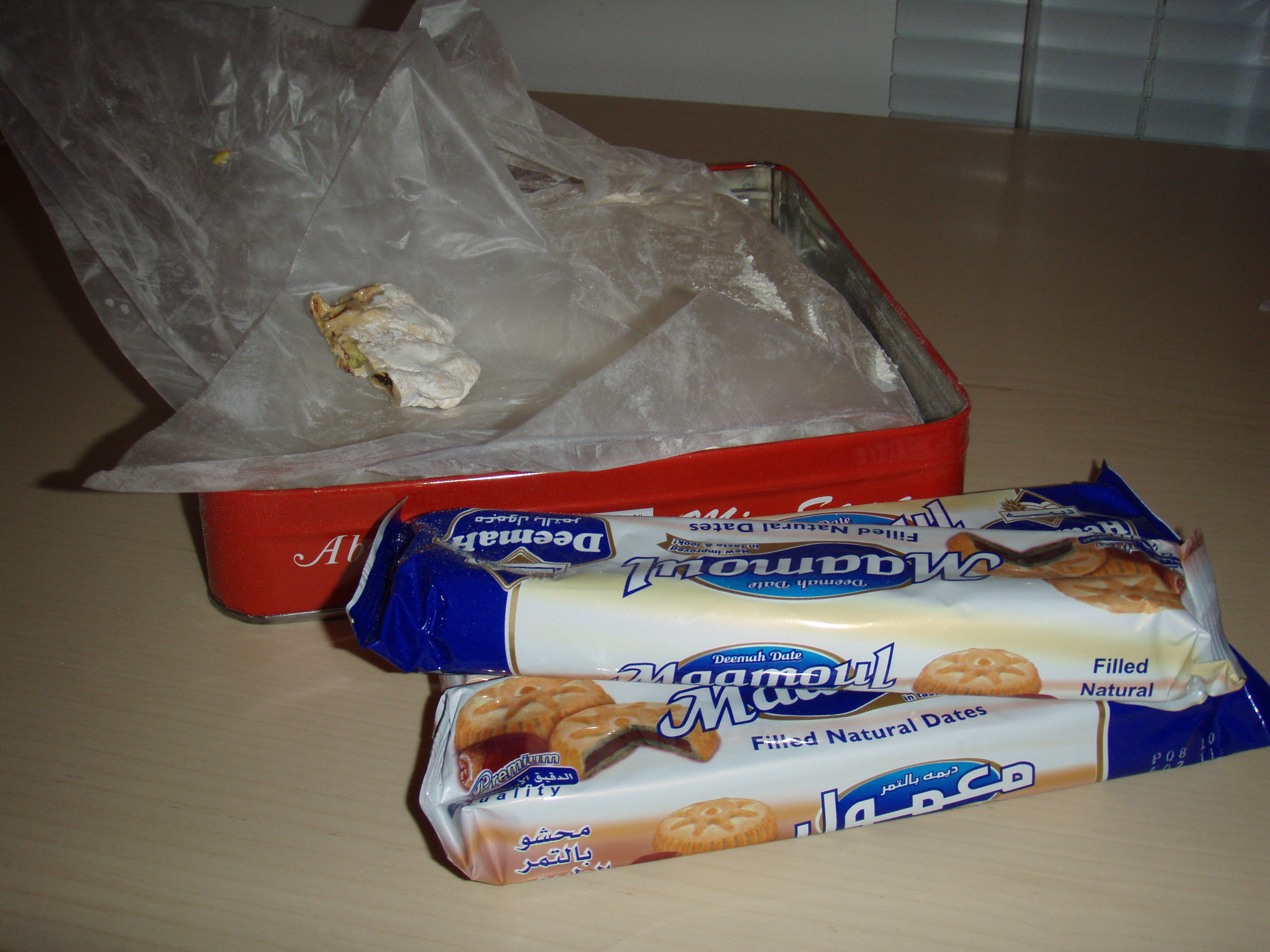PA140006 We zitten hier wat gexefsoleerd, oplettend lezertje. Even ergens heen, een rondje om, een wandelingetje of even de stad in zit er niet in. Boodschappen doen al helemaal niet. Geen idee wat hier allemaal te krijgen is dus. Zou je zeggen. Toch heb ik nu een aardig beeld van wat hier zoal is aan bijzonderheden. Af ent toe neemt iemand iets voor me mee. Dr. A. was voor een workshop naar Kerada. Toen hij terugkwam had hij een groot blik mee voor mij. Daarin een lokale lekkernij, ze noemen het manna. Het heeft wat van noga maar is veel minder zoet dan wat wij daaronder verstaan. Vanavond heb ik het even geproefd. Heerlijk. Dezelfde dag toevallig kwam A. langs met een plastic tasje. Daarin dadelkoekjes van zijn vrouw. Daar hoef je niets voor te doen, dat nemen ze zo voor je mee.