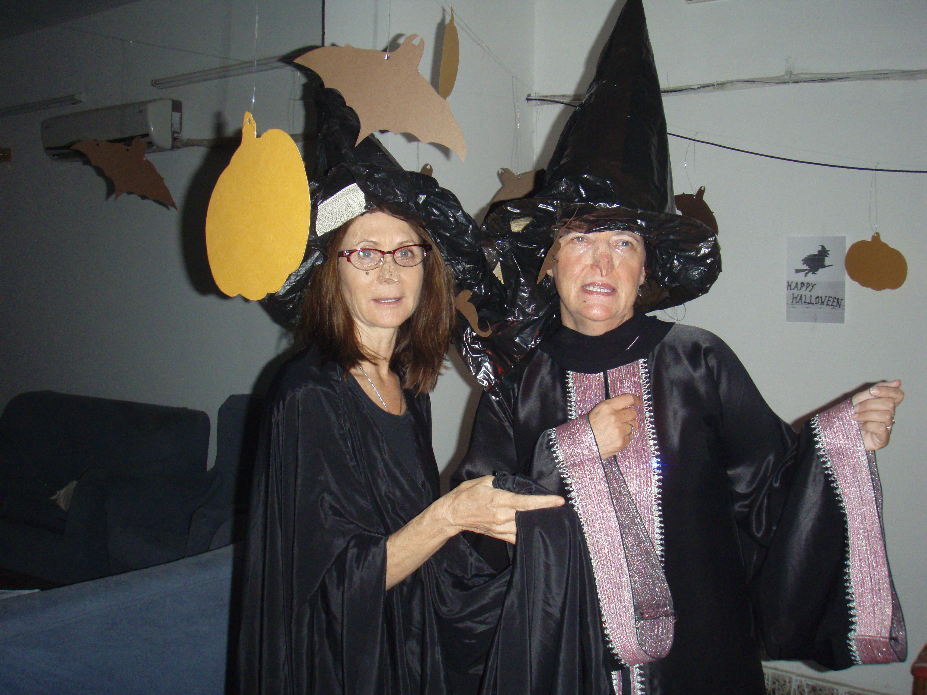 Groot succes gisteren, oplettend lezertje, dat Halloween feest. Helaas was ik fysiek niet in staat er een logje aan te wijden gisteren, en ook vandaag gaat het nog niet erg best met me, maar een mens houdt het ook niet een hele dag in bed uit. Dit mens niet tenminste. Om vier uur ’s middags begonnen met het restaurant aan te kleden, onder toeziend oog van alle restaurant medewerkers en schoonmakers. Verjaardag? Nee, Halloween. Leg het maar even uit aan iemand die nauwelijks Engels spreekt. Maar het resultaat was geweldig, met vislijn, honderd pompoenen en honderd vleermuizen kun je iedere ruimte aankleden. De Jack’o lanterns en de kaarsjes deden de rest. Verder kun je op Itunes heel wat Halloween muziek vinden, om over clipart voor het menu maar te zwijgen. Er ging een wereld voor me open. Met collega A waren wij uiteraard the Wicked Witches of the West, wat zouden we anders kunnen zijn. Vuurwerk bij binnenkomst, knalrommel tijdens het diner en Romeinse kaarsen op de taart: het was geslaagd. Alleen de eyeballs in goo, die vond niemand lekker. Een PSD-er zei me: als je dit doet voor Halloween wil ik wel eens weten wat je doet voor Kerst. Daar kunnen we dan nu al vast over na gaan denken. Hoe vind je hier een kerstboom?