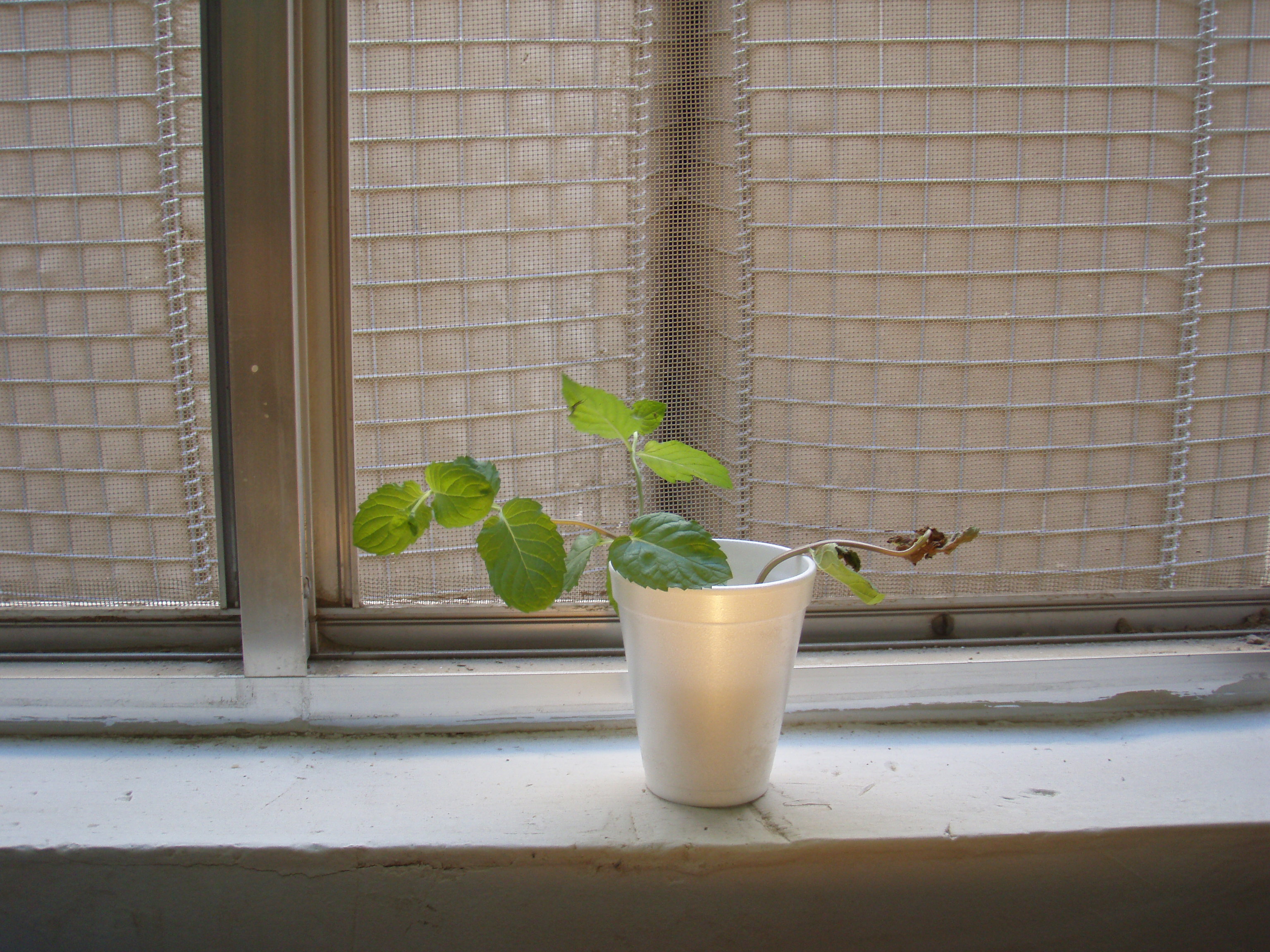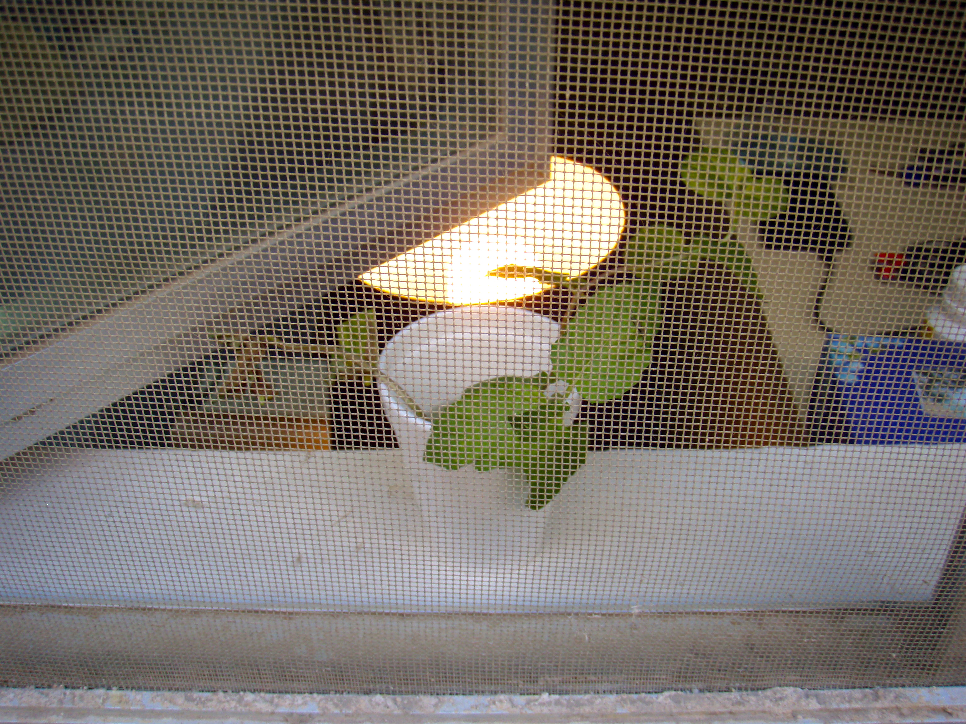 Al een paar weken bedacht ik dat ik weer eens achter mijn kamer langs moet lopen. Ik vroeg mij namelijk af waar het kabeltje heen ging wat hier getrokken is om onze satellietkastjes op aan te sluiten. Vandaag was ik toch onderweg, dus even tussen woongebouw en blastwall door. Dat is een paadje waar weinig gebeurt. De PSD-ers lopen er tijdens hun ronde, de work-outers nemen het soms op in hun rondje lopen of rennen, de doghandler borstelt er de hond. Het ziet er dus zo uit: dat kabeltje gaat naar het dak, recht door de muur heen geboord, geen probleem. De boiler staat er ook, en is een aantal weken geleden ook bij gezet, zodat ik niet onder een koude douche hoef. En toen ik langs liep zag ik mijn mint-stekjes gezellig in de vensterbank staan en hoorde ik Radio 1 via mijn Ipodje de Iraakse wereld in komen. Dat is nog steeds een zegen: live radio sinds een paar weken die feilloos werkt. Zo blijf je helemaal b(l)ij.