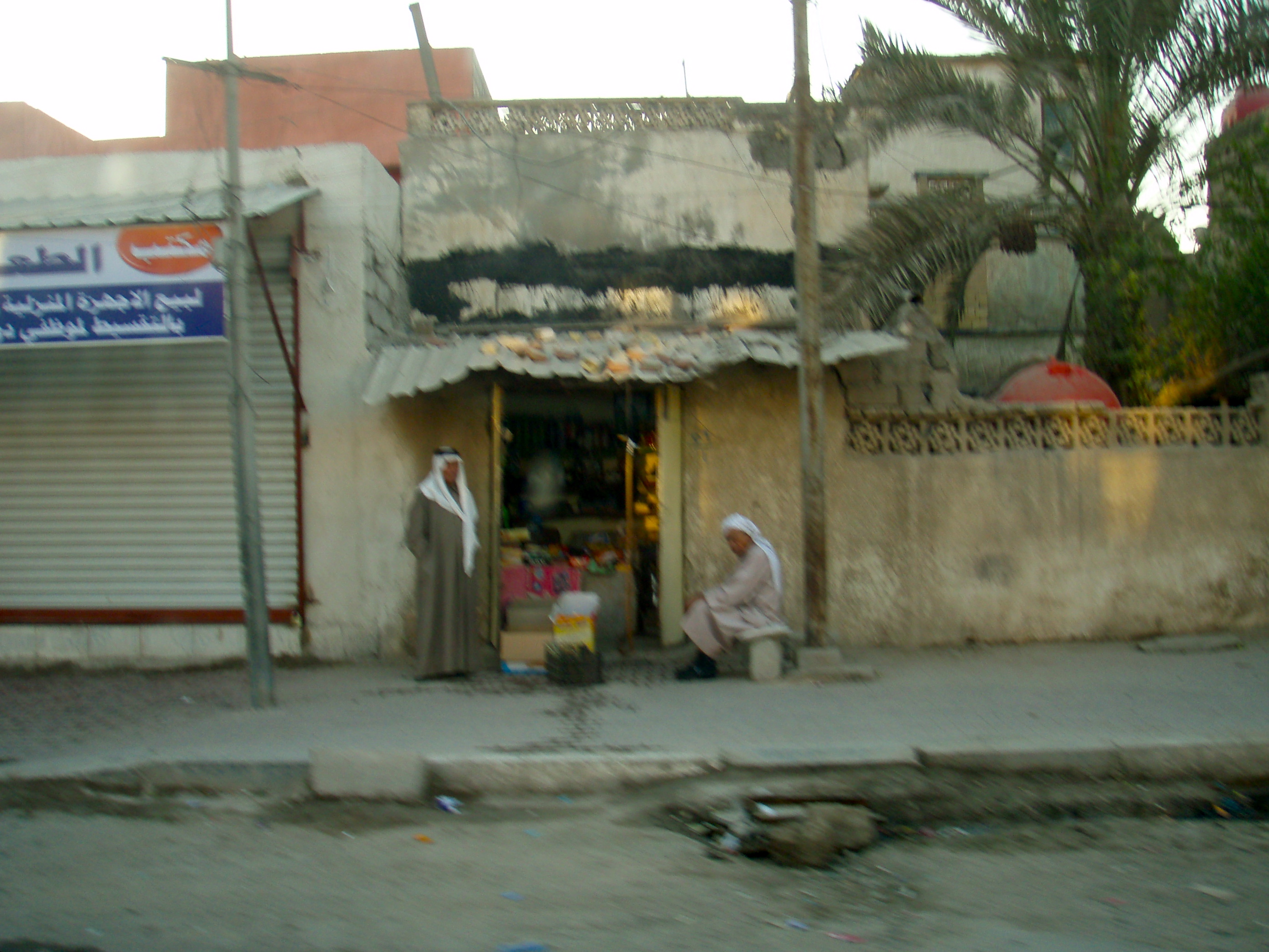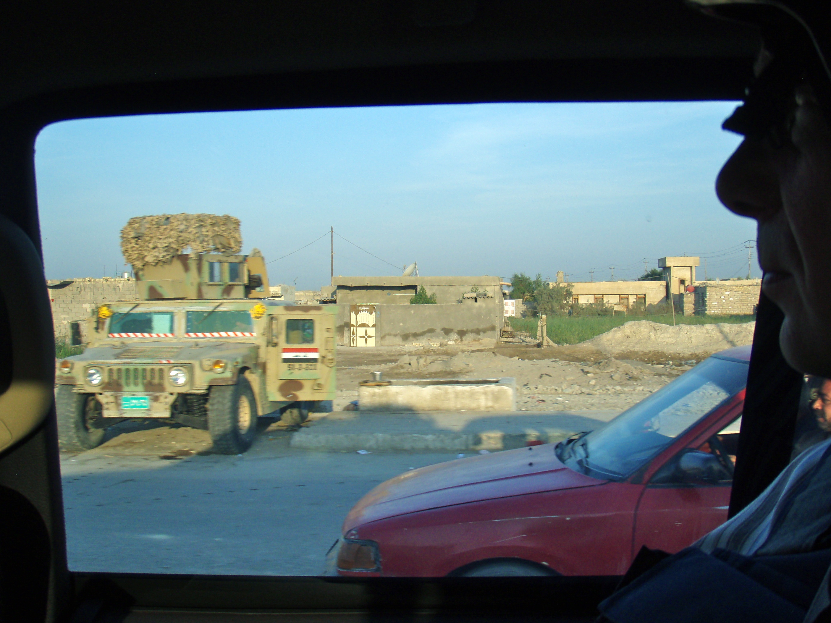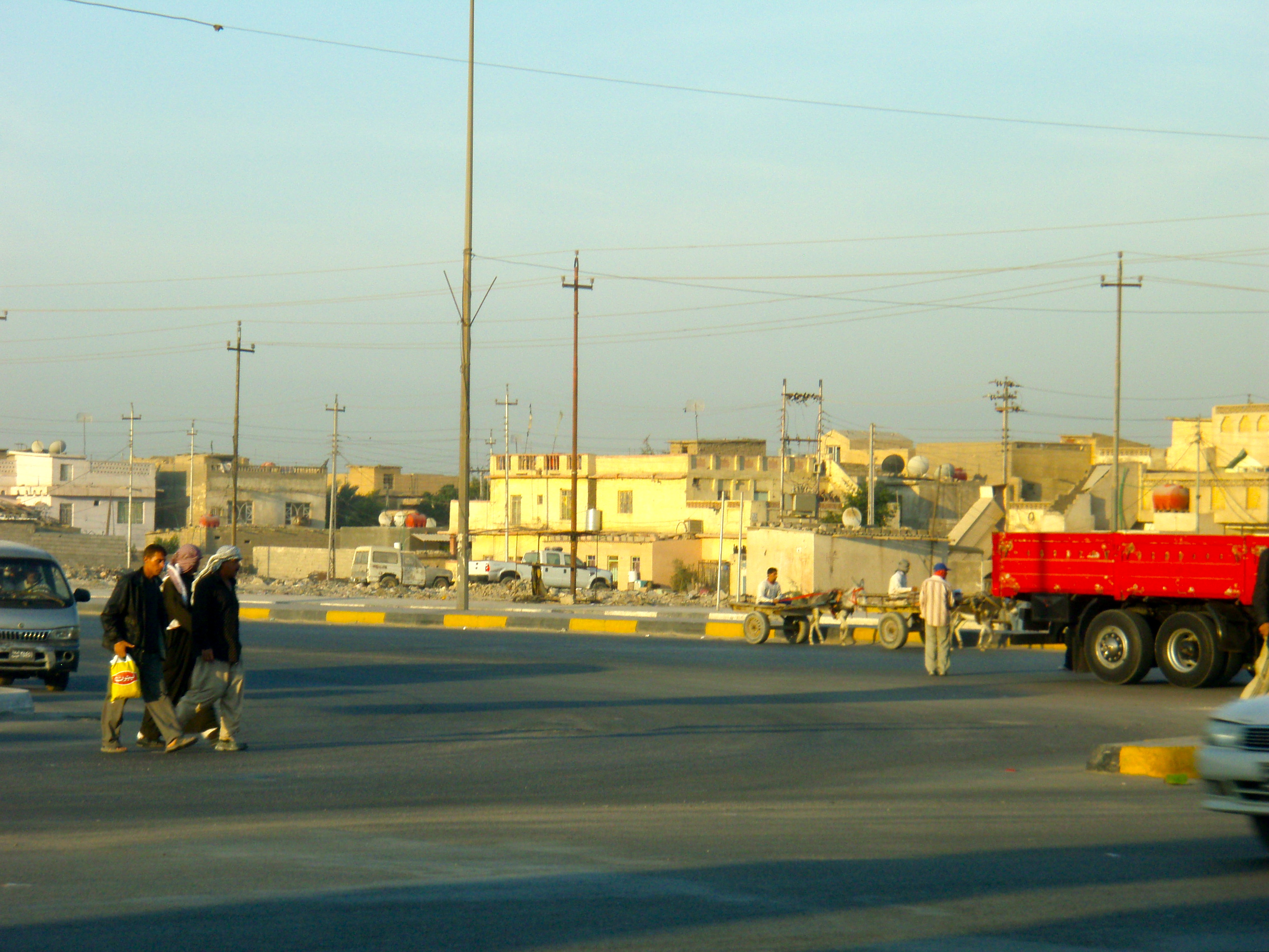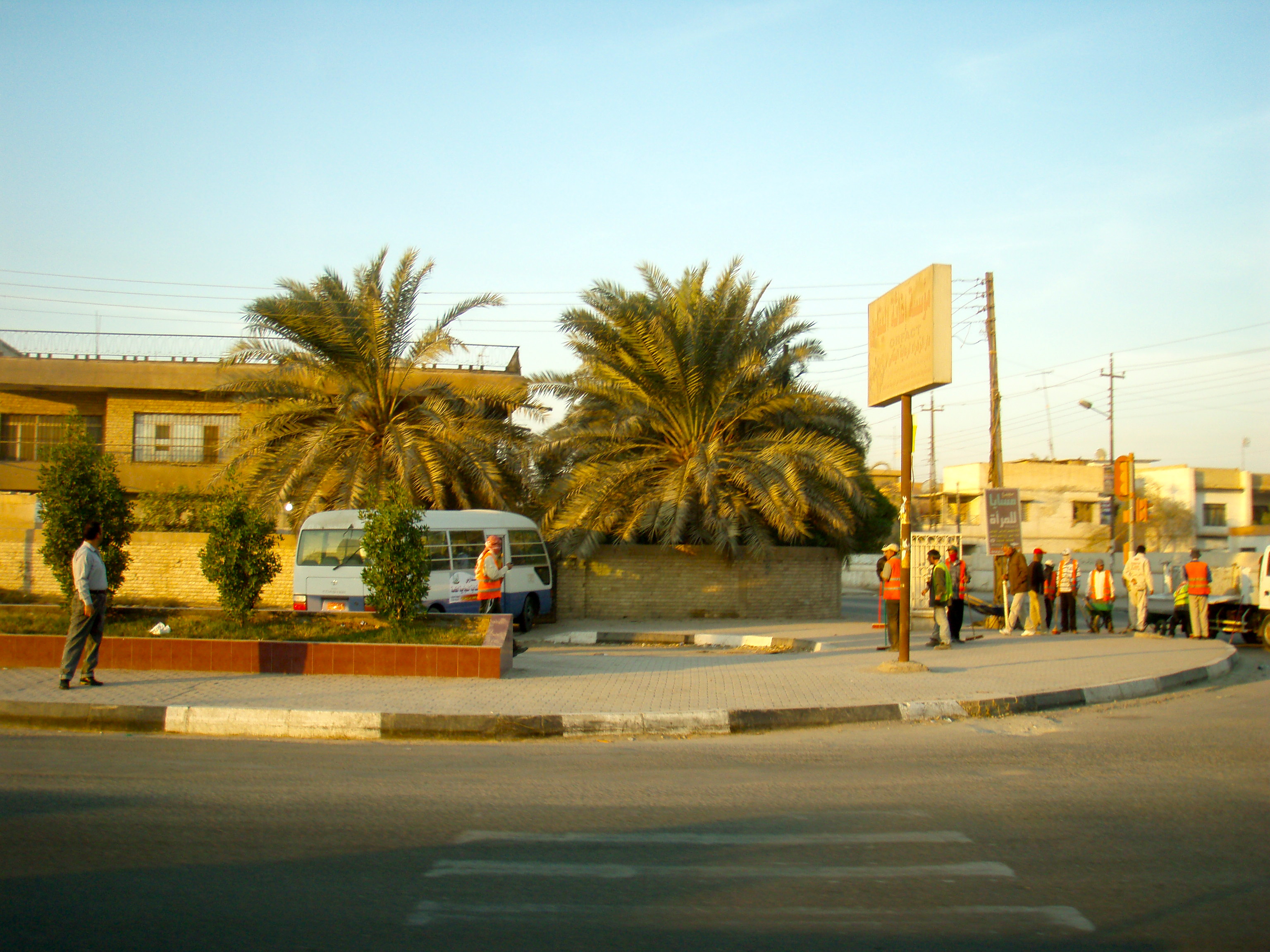 Nu we nieuwe gepantserde auto's hier hebben, hebben we ook heldere ramen als we buiten rijden. Dit keer dus tijd en gelegenheid foto's te maken. Rijdende auto, tegenlicht, alles werkt tegen dus soms zijn ze niet heel scherp, en gelukkig kun je tegenwoordig foto's recht zetten. Maar het geeft wel een beeld van de wereld buiten de compound die u wellicht nog niet kent. Dus geniet van de omgeving. Dit is Basrah, op een rustige ochtend, voor acht uur.