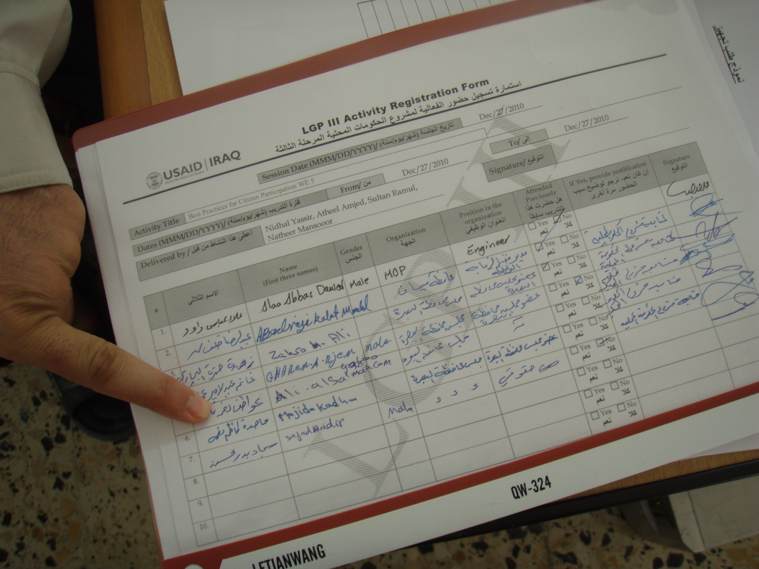 PC270027 De laatste regionale bijeenkomst voor dit werkplan 2010 van ons werkelement zit er op. Vanuit de aanpalende provincies kwamen flink wat mensen elkaars ervaringen met publieksparticipatie delen. Dat zijn flinke stappen, die we maken. De eerste bijeenkomsten waar mensen hun mening konden geven over wetgeving of plannen zijn inmiddels al geweest. Soms met, soms zonder info vooraf. Dan blijkt dat met info vooraf toch handiger is. Dat leren we van elkaar op zo’n bijeenkomst. SMS-jes naar de Provincie sturen, ik dacht dat het niet zo zou werken, maar het werkt, mensen gebruiken het vooral als er klachten zijn over serviceniveau van het een of ander. Die zijn er nogal uiteraard. Ook daarover zag ik goede dingen voorbij komen: doelen stellen om het niveau te verberen en dan monitoren en concluderen dat je te kort bent geschoten en volgend jaar dus meer moet investeren. Ja, daar kunnen wij soms nog iets van leren zelfs. Al te mooi moet  je het ook niet voor stellen. Geen drinkbaar water uit de kraan, geen enkele vorm van ophaalstructuur voor huisvuil. Zo basaal is het nog. Maar als ze dapper volhouden en al het geleerde in praktijk brengen, dan maakt het een goede kans. Dat we daar met elkaar en steentje aan bij mogen dragen maakt ons, Irakezen en Expats, blij. Goed gevoel voor het nieuwe jaar