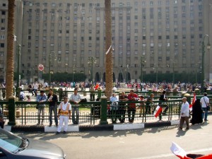 Vandaag alweer precies een maand in Cairo, oplettend lezertje, tijd om mijn visum te verlengen. Daar hoor je allerlei vreselijke verhalen over, dus ik was op het ergste voorbereid, met een onverwoestbaar humeur, een appeltje voor de dorst en wat huiswerk om eventueel de tijd te doden. Zo voorbereid kan het alleen maar meevallen. Allereerst kon ik de hele reis naar Sadat zitten, zeer uniek. Bij Mugamma aangekomen, het grote gebouw aan het Tahrirplein, snel door de ingang, camera afgeven (helaas) en drie keer vragen waar ik heen moet, want mijn gidsje vergeten. Ik kreeg verschillende antwoorden, dus ik ging een verdieping te hoog. Niet erg, dat geeft je de gelegenheid rond te kijken. Het gebouw is van buiten beton en donkergrijs, doet erg aan oostblokbouw denken. Van binnen overal marmer. Wit op de wanden, groene randjes om de deuren, en er zijn erg veel deuren. Uiteindelijk stond ik op de goede afdeling bij het goede loket op het verkeerde moment, ik moest nog wat andere stappen nemen. Maar met een beetje rondvragen en kennis uitwisselen kwam ik met mijn zegeltjes (dus vooruit betalen) en mijn ingevulde aanvraagformulier bij het goede loket. Ik was niet de enige, om mij heen honderden mensen die hetzelfde wilden: visum verlengen. Duidelijk overal vandaan, en sommigen hadden een lokale gids mee, wat het ergste deed vermoeden. Allemaal onnodig, die drukte. Binnen een uur, met al het verkeerd lopen en kopieën maken op een ander verdieping er bij, had ik de aanvraag bij de juiste dame ingeleverd. Ze zei me na twee uur terug te komen bij een ander loket. Het gaat als volgt, ze vult jouw in het Engels ingevulde formulier in het Arabisch aan, ziet toe dat betaald is, zet je pasfoto vast, neemt de kopieën en het paspoort in en zet je naam op een lijst in een groot boek. Als ze zo’n tien setjes aanvragen verzameld heeft gaat er een mapje om en brengt een politieagent met zwarte baret het geheel weg. De twee uur nuttig gebruikt, waarover later. Ik kwam om 13.00 terug en was zeer benieuwd, maar niets aan de hand. Als ik een voordringer was geweest, zoals er veel zijn (buitenlanders dus hè, geen Egyptenaren, die staan daar niet tussen) was het na twee minuten gepiept geweest. Mijn paspoort met prachtig nieuw visum lag klaar. Niet de aangevraagde 6 maanden (was een gokje) maar in verband met de veiligheid slechts drie, altijd nog een meer dan ik nodig heb. En fluitend er weer uit. Als ik echt lang had moeten wachten, had ik overal snacks en drinken kunnen kopen, er was een theecounter en er stonden overal chips en fris handeltjes. De trappen vol met bezoekers en ambtenaren, buiten verkopers van speelgoed, zakdoekjes en bekers. Druk, druk, druk, maar ik heb niemand de stem horen verheffen of kwaad zien worden achter die burelen. Het zag er allemaal zeer analoog uit, nergens een pc, alles met de hand en een pennetje.