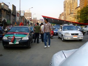 Op de foto de grote vlag die net opgehangen werd toen ik op weg was naar Midan Tahrir. Die is voorlopig even trending bij de vlaggen-verkopers die hier overal zijn.