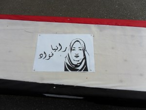 Opvallend minder tenten vandaag op het plein, na twee weken actie voeren. Nu de verkiezingen zo duidelijk zijn verliezen sommigen de moed. Anderen gaan onverdroten door, en de discussies op het plein zijn alom tegenwoordig. Voor het kabinetsgebouw is een tweede sit-in, en daar stonden de kisten die vrijdag gebruikt werden. De meesten voorzien van een afbeelding van een van de slachtoffers. Er waren minder kisten dan slachtoffers, geen idee wat daaraan ten grondslag ligt, degen die ik het vroeg sprak goed Arabisch. De media zoeken nog een plaatje, een enkele reporter is vasthoudend om een verhaal compleet te krijgen. Dat valt niet mee, het zal inherent zijn aan een situatie als de huidige dat er veel verwarring, veel onduidelijkheid is en veel geruchten en wantrouwen rondgaan. Onder die slachtoffers op de kisten een vrouw, een arts, Een van de drie artsen die omkwamen in hun pogingen anderen te helpen.