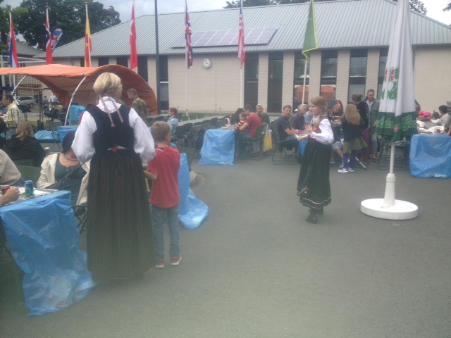 Vandaag is hier family fun day. Twaalf nationaliteiten presenteren zich met hun nationale gerechten, klederdracht en toeristische informatie. De Nederlanders namen nog een klein orgeltje en een heuse haringkar mee. Waar ook jenever werd geschonken, dus het was daar druk. Allemaal in burger langs de kraampjes tot ’s avonds acht uur. We mochten onder werktijd langsgaan. Met een paar dapperen probeerde ik na aanvang van het feest door te werken, maar de zangeres van de versterkte band zong dermate ver van haar eigen stemsoort, dat het op een geven moment moeilijk werd je te concentreren. We gaven het op, sloten de computers af en begaven ons in het feestgedruis. Waar het nog moeilijk was collega’s te herkennen die je dagen in uniform aantrof en die nu in een simpel t-shirt rondgaan. Voor de kinderen was er een klimbos neergezet, waar zij vierkantjes konden maken op twee meter boven het asfalt, keurig gezekerd. Na een klein uurtje hield ik het voor gezien. In de stralende zon nog een paar uurtjes wat lezen en bloggen. Klinkt raar, maar liever had ik nog wat doorgewerkt. Nog een volle schrijfdag en een halve dag afronden, dus er moet vaart gezet worden om met min of meer klare producten hier te vertrekken vrijdag. Terwijl er ondertussen steeds mensen binnen komen die nieuwe lijstjes vragen, updaten of coördineren, formulieren ingevuld willen hebben, Dat is wel jammer, net als je er lekker in komt en het schrijven vloeiend gaat, de opstartproblemen overwonnen en de lijnen uitliggen, moet je weer inpakken.
