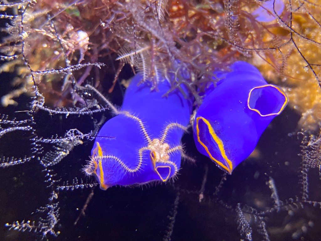 Terwijl u achter de chocolademelk zit of vol in de kerststress, vertrokken wij vanochtend voor de eerste ochtendduik. Wind tegen, zout op de lippen, en dan alles weer op en aan en hup, te water. Op deze plek niet alleen veel zeenaalden, wel een soort of vier, maar ook de ultieme zeenaald: een zeepaardje. Een gele dit keer, met oranje wangetjes. Echt scherp wilde hij dichtbij niet worden, dus ik heb hem gefilmd. En daarna kwam er een klein oranje knikkertje in zicht, een zeer jonge frogfish. Een centimeter schat ik, maar zo knaloranje dat je hem niet kunt missen.